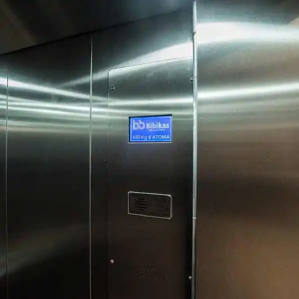 Θάλαμος: Tempo inox, με επένδυση δαπέδου ισχυρό τριγωνικό αλουμίνιο . Κομβιοδόχος inox satin και οροφή classic low headroom