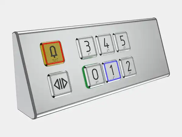 Ο οριζόντιος πίνακας ελέγχου είναι εξοπλισμένος με κουμπιά αφής 50×50 mm εξοπλισμένα με οπίσθιο φωτισμό και γραφή Braille, ενώ τα κουμπιά κλήσης 50×50 mm είναι απτικά και εξοπλισμένα με οπίσθιο φωτισμό. Τα κουμπιά κλήσης διατίθενται προαιρετικά με πρόσοψη σε οποιοδήποτε χρώμα RAL ή premium.