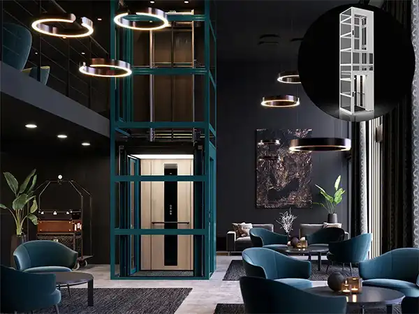 Η έτοιμη έννοια για ανελκυστήρα μπορεί να εγκατασταθεί σε λίγες μέρες και απαιτεί ελάχιστη προετοιμασία του κτηρίου και πολύ λιγότερη ανθρώπινη εργασία από έναν συμβατικό ανελκυστήρα.